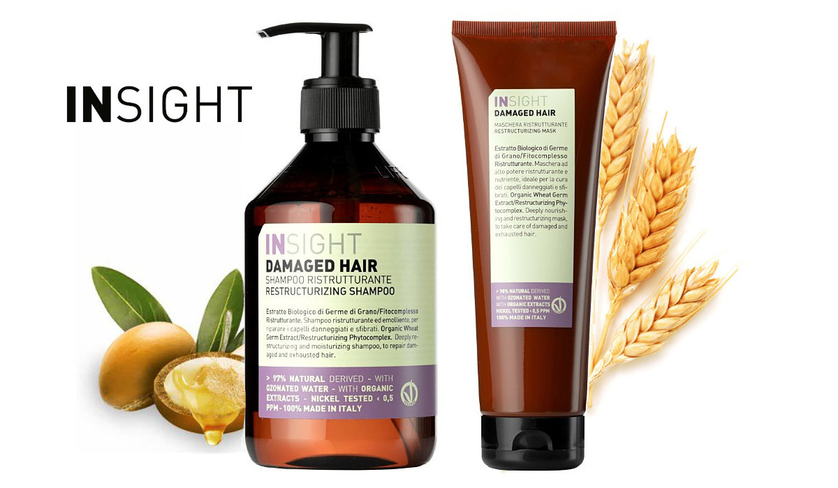 Skoncentrowana dawka intensywnie nawilżających i odbudowujących składników aktywnych zawartych w kosmetykach linii INSIGHT Damaged Hair doskonale pielęgnuje zniszczone i bardzo wymagające włosy. Produkty bazują na organicznym ekstrakcie z kiełków pszenicy i drogocennym oleju arganowym, czyli składnikach znanych ze swoich silnie nawilżająco-regenerujących właściwości. Ponadto znajdują się tu wygładzające masło oliwkowe i olej z otrębów ryżu, który, zapobiega rozdwajaniu końcówek oraz chroni włosy przed promieniowaniem UV. To właśnie dzięki tej wyjątkowej kompozycji roślinnych składników kondycja zniszczonych włosów wyraźnie poprawia się już po pierwszym użyciu - odzyskują one zdrowie i blask.