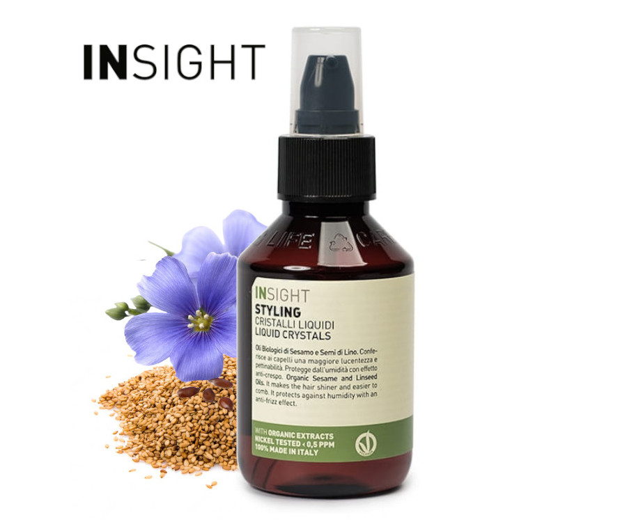 Ciekłe kryształki INSIGHT Styling, to zdecydowany bestseller marki Insight! Nie bez powodu. Znajdziesz tu bowiem idealną mieszankę naturalnych olejów lnianego i sezamowego, które odżywiają i regenerują włosy oraz dodatek lekkich silikonów, które doskonale zabezpieczą Twoje włosy przed uszkodzeniami i zapobiegną rozdwajaniu końcówek. Serum INSIGHT Styling chroni włosy przed utratą wilgoci i przed puszeniem się pod wpływem zmiany pogody. Kosmetyk nie wymaga spłukiwania i wystarczy jego naprawdę niewielka ilość, aby zapewnić pasmom solidną porcję nawilżenia. Po użyciu tego serum nawet najbardziej matowe włosy stają się niezwykle miękkie i niesamowicie lśniące!