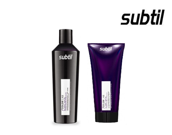 Zestaw Subtil Color Lab Blond Infini zawiera Anti Fading Color System i Complex Hydro-Regulating. Dzięki nim kolor Twoich włosów będzie chroniony, a suszenie zabierze mniej czasu. Maska i szampon nie tylko zniwelują żółte odcienie, ale także odbudują barierę lipidową włosów, wygładzą i nawilżą je. Twoje włosy zyskają chłodny odcień, będą jedwabiście gładkie, miękkie i pełne objętości.