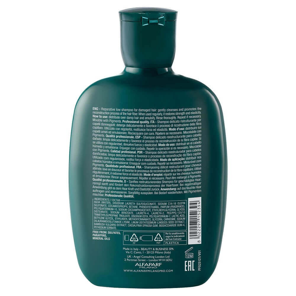Szampon Alfaparf Reconstruction zapewnia miękkość, wygładzenie, a także chroni kolor włosów farbowanych.