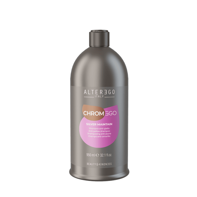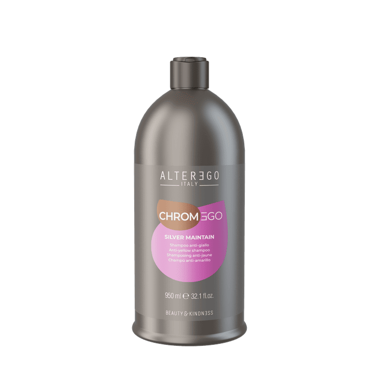 Szampon Alter Ego Chromego Silver Maintain Anti-yellow, to produkt stworzony z myślą o włosach blond lub siwych.