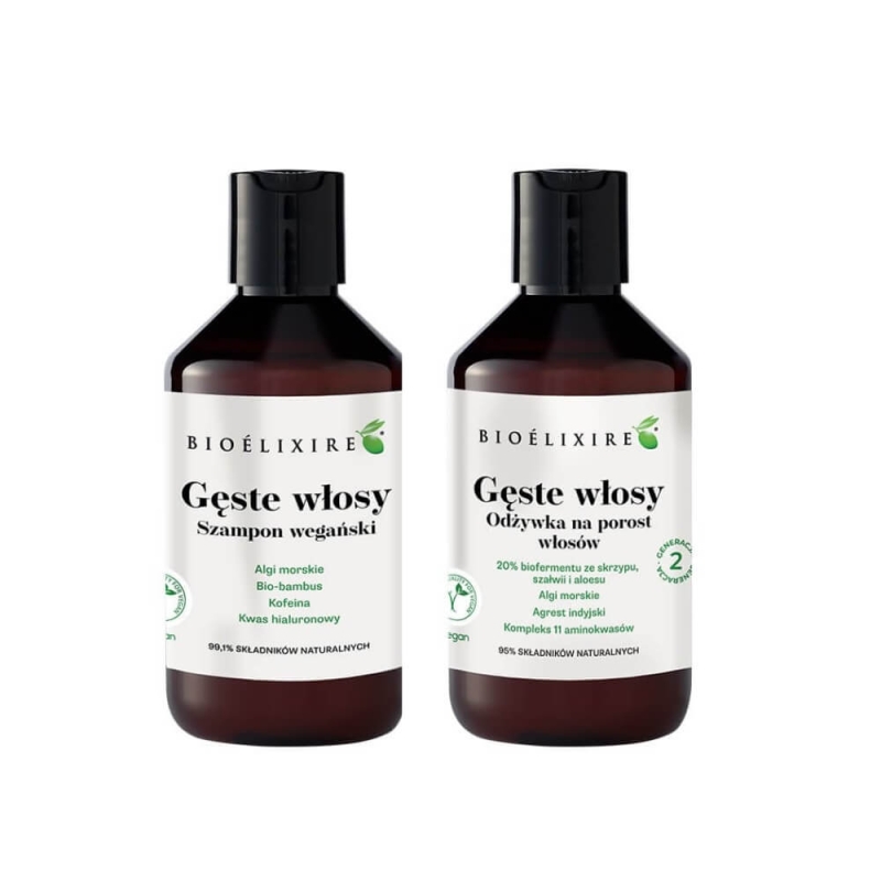 Bioelixire Gęste włosy Zestaw Wegański szampon i odżywka przeciw wypadaniu włosów 2x300ml