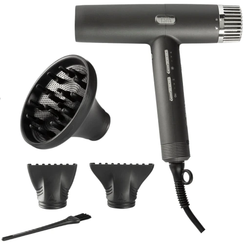 Kompaktowa suszarka z bezszczotkowym silnikiem, jonizacją i dyfuzorem.