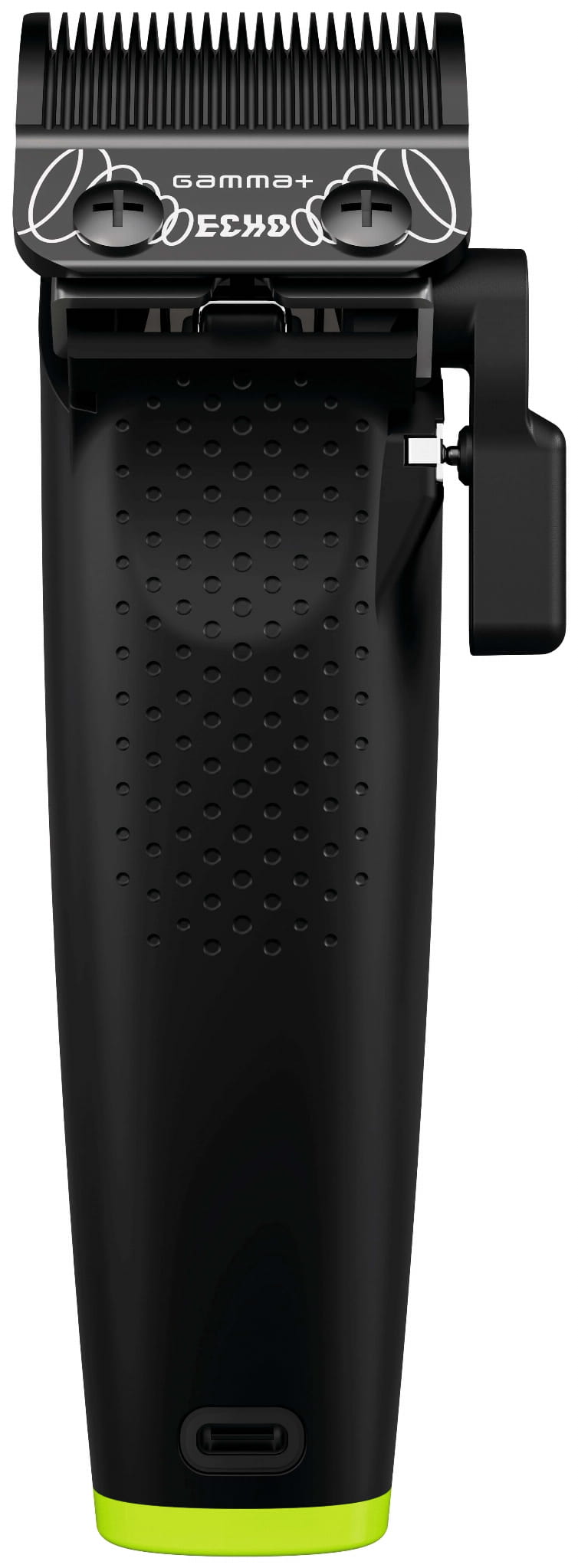 Maszynka Gamma Piu Xcell zasilana jest akumulatorem litowo-jonowym pozwalającym na 180min bezprzewodowej pracy, który ładowany jest za pomocą bazy lub kabla USB-C.