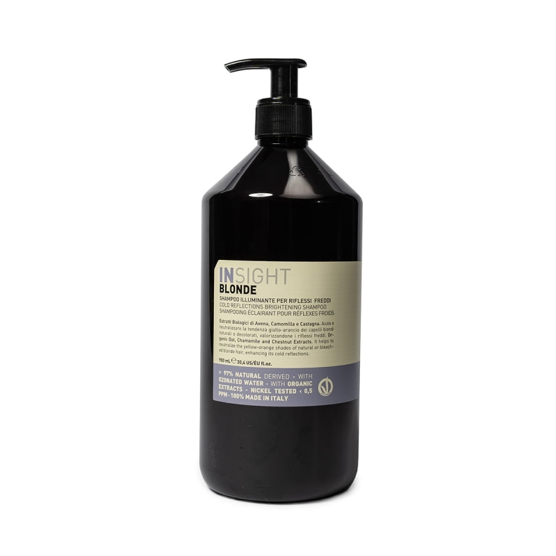 Szampon Insight Blonde to fioletowy szampon przeznaczony do pielęgnacji włosów blond, które wymagają ochłodzenia. Sprawdza się zarówno w przypadku włosów o naturalnym kolorze, jak i włosów farbowanych/rozjaśnianych. Dzięki wyjątkowej recepturze opartej na organicznych wyciągach z owsa, rumianku i kasztana intensywnie nawilża i odżywia włosy, uelastycznia je a także zabezpiecza przed działaniem szkodliwych czynników zewnętrznych.
