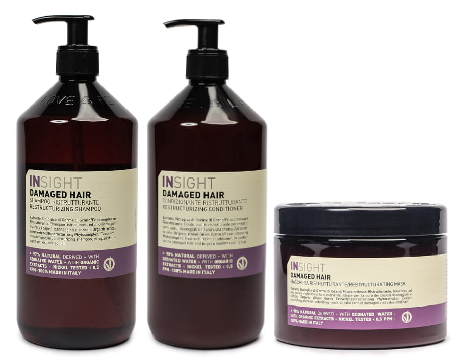 Insight Damaged Hair to naturalne kosmetyki specjalnie stworzone z myślą o pielęgnacji włosów zniszczonych. Kosmetyki zdecydowanie poprawiają kondycję włosów, odżywiają je i regenerują. Włosy stają się piękne, miękkie i pełne blasku. Specjalnie stworzona formuła bazuje na kiełkach pszenicy i odbudowującym fitokompleksie, w którego skład wchodzi olejek arganowy, masło z oliwek i olej z otrębów ryżu.