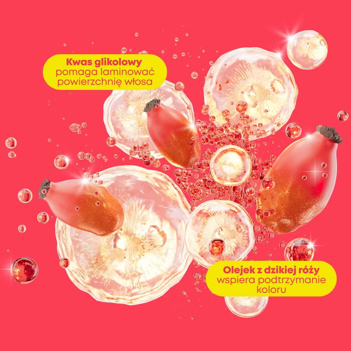 Produkty wzbogacone zostały o kwas glikolowy i olejek z dzikiej róży, które dodają włosom olśniewającego blasku, podkreślają i chronią kolor, dzięki czemu pozostaje on intensywny aż do 6 tygodni.