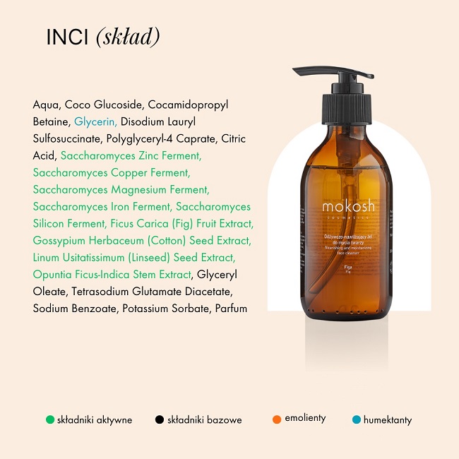 Żel do mycia twarzy Mokosh z figą jest stworzony z myślą o delikatnym oczyszczaniu skóry, a jego skład oparty jest na naturalnych składnikach.