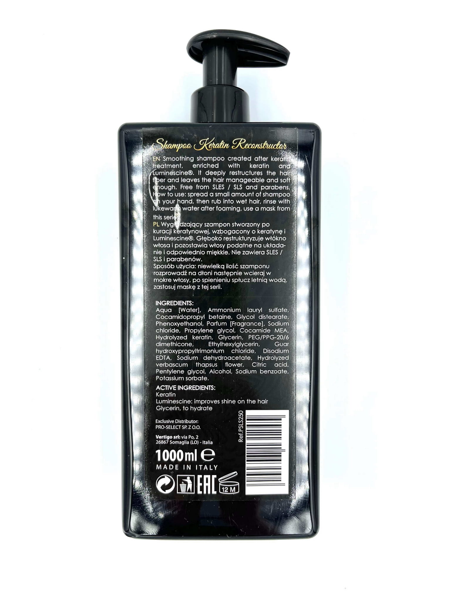 Został wzbogacony o keratynę i Luminescine, które wzmacniają włosy i pozwalają zachować im odpowiednie nawilżenie.
