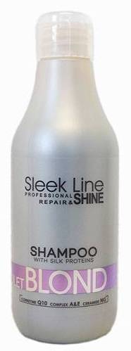 Szampon Sleek Line został stworzony po to, aby nadać piękny perłowy odcień włosom siwym, rozjaśnianym i blond. Delikatnie oczyszcza, nawilża i regeneruje włosy. Zawiera jedwab, koenzym Q10, kompleks witamin oraz ceramidy, dzięki czemu Twoje włosy będą piękne, zdrowe i pełne blasku. Szampon zniweluje niechciane refleksy i nada włosom chłodny, perłowy odcień.