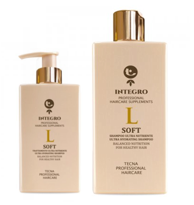 Szampon Tecna INTEGRO Soft Shampoo doskonale i dogłębnie nawilża włosy cienkie i osłabione po koloryzacji lub zabiegach chemicznych. Włosy stają się miękkie i olśniewają naturalnym blaskiem. Szampon to jeden z elementów kuracji odżywczej Tecna INTEGRO Soft.
