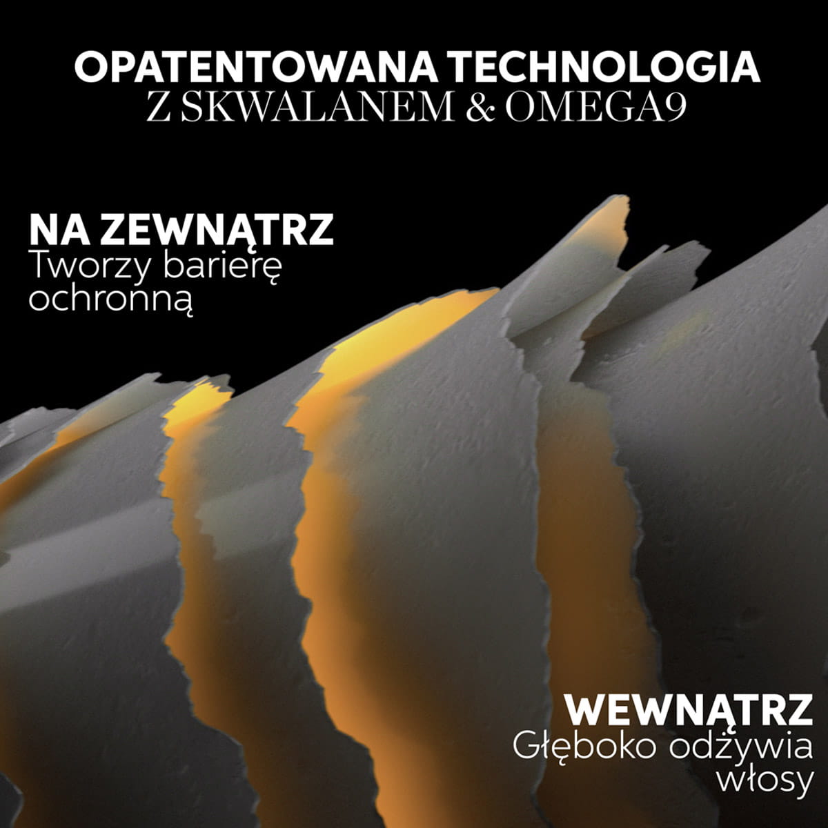 Zawierają drogocenne składniki jak np. Squalane i Omega-9, dzięki którym włosy są odżywione i odbudowane zarówno wewnątrz jak i z zewnątrz.