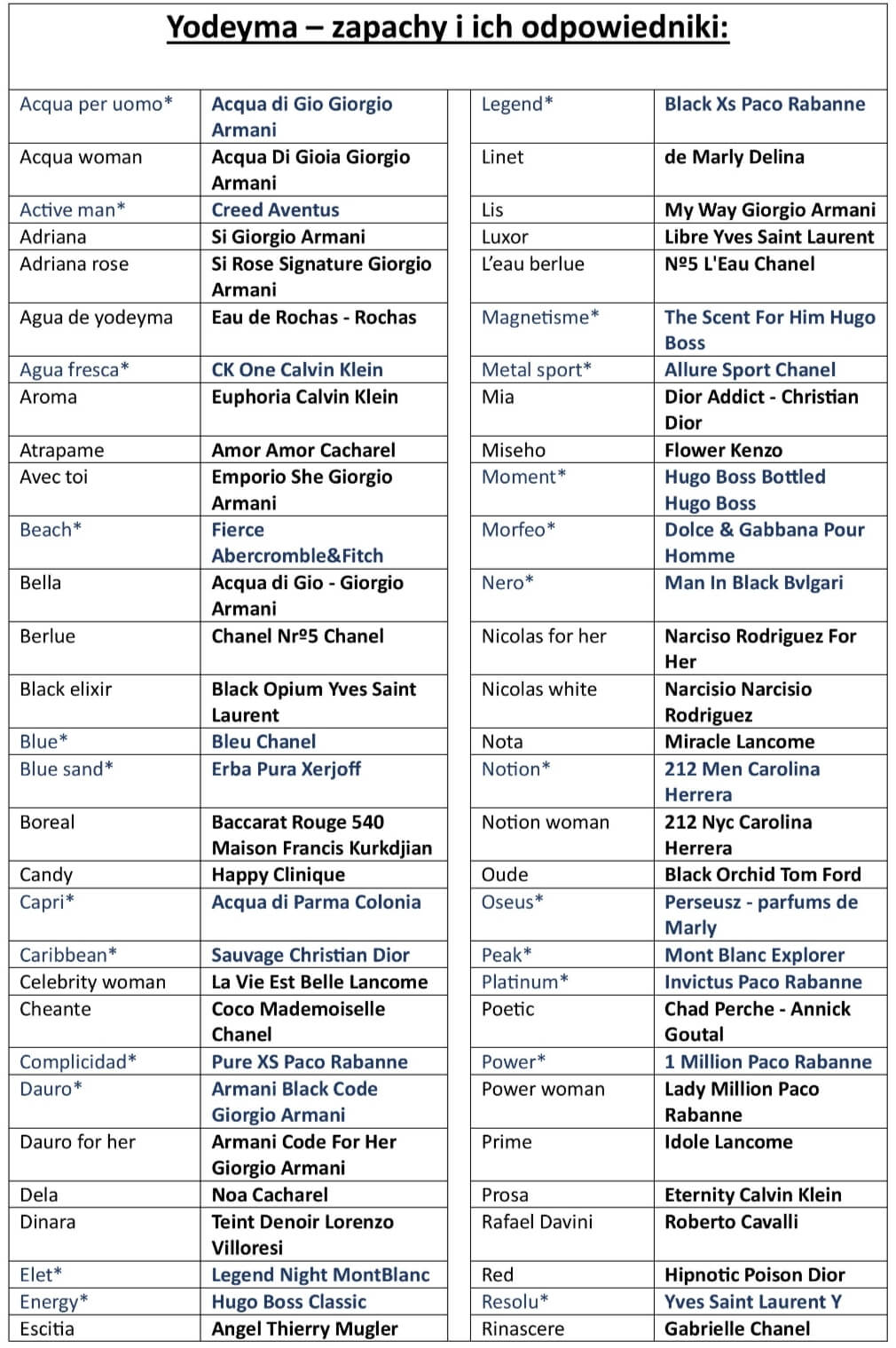*Perfumy Yodeyma nie są podróbkami znanych markowych perfum, a produktami o podobnych nutach zapachowych.